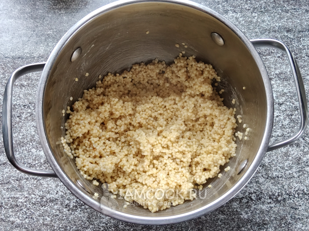 Крупу промыть, залить водой и отварить, помешивая, на среднем огне, пока вся вода не испарится.