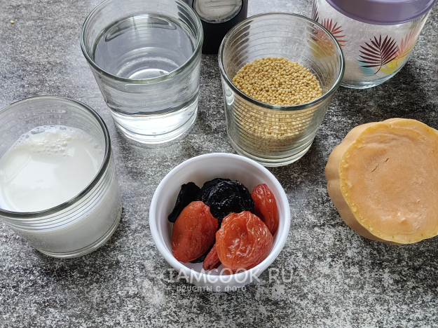 Пшенную кашу с тыквой и сухофруктами я готовила из таких ингредиентов.
