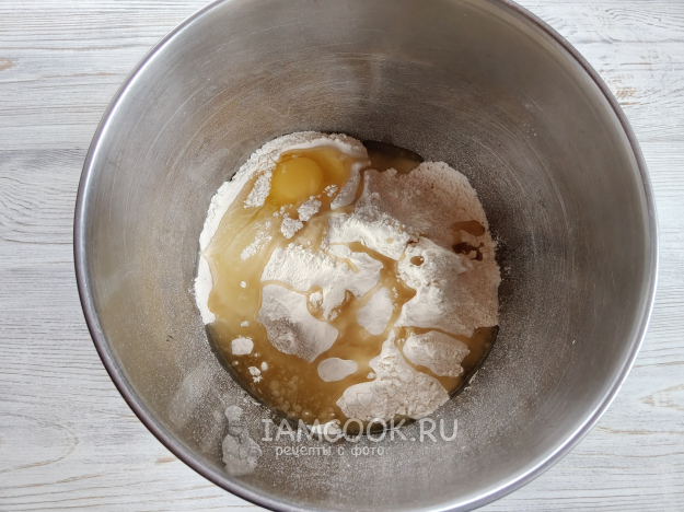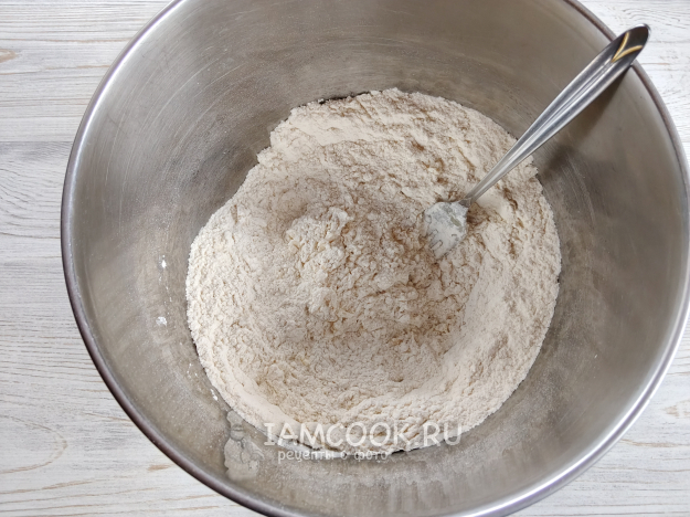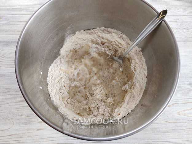 Перемешать сначала вилкой, а затем замесить тесто руками.