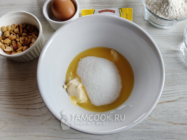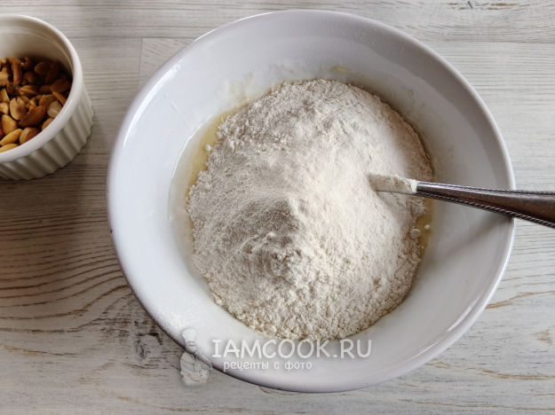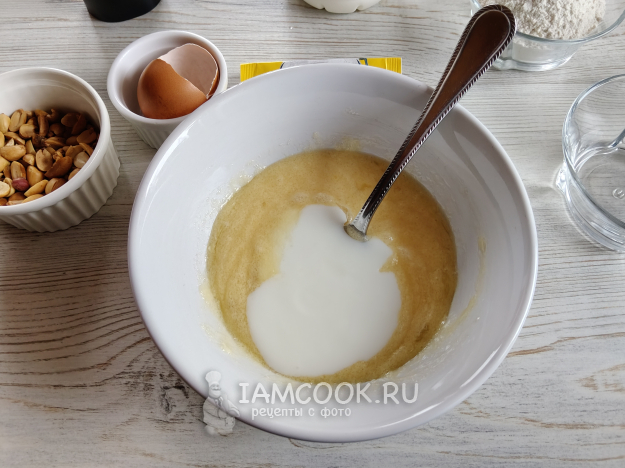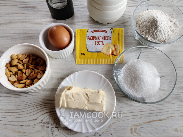 Возьмите продукты для приготовления трубочек на кефире с арахисом.