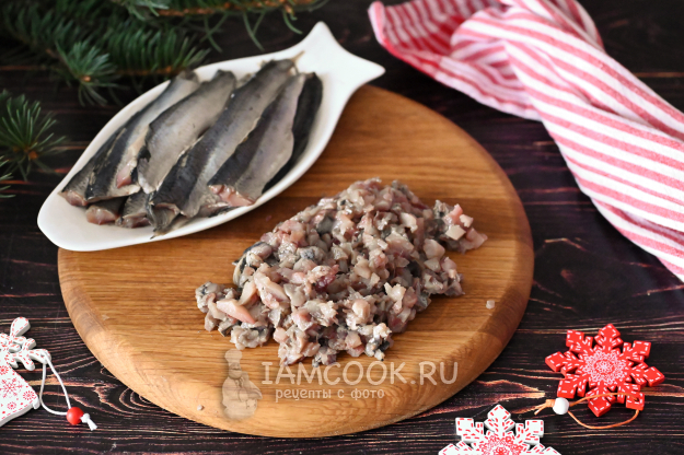 Разделайте салаку на филе без кожи и костей и нарубите мелко ножом.