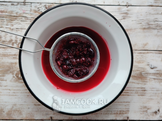 Протереть массу через сито, чтобы кожица и зернышки не попали в желе. Жмых выбросить.