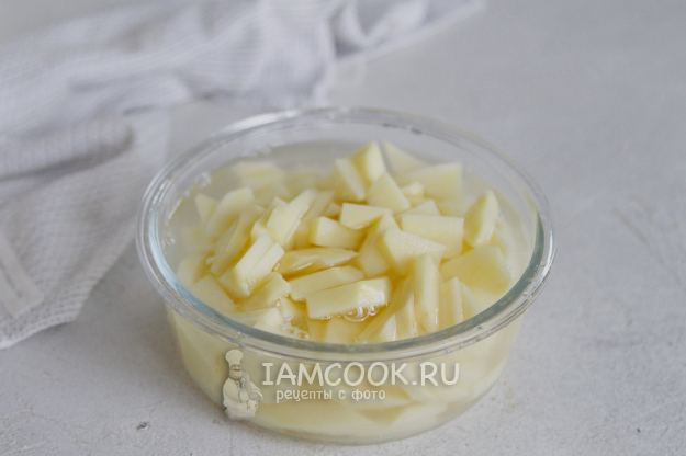 Картофель содержит в себе большое количество крахмала, поэтому чаще всего его вымачивают в воде. Замачивание позволяет снизить калорийность и количество быстрых углеводов. Замачивать или нет картофель, тут уж каждая хозяйка решит сама.
