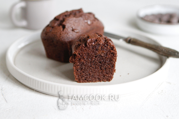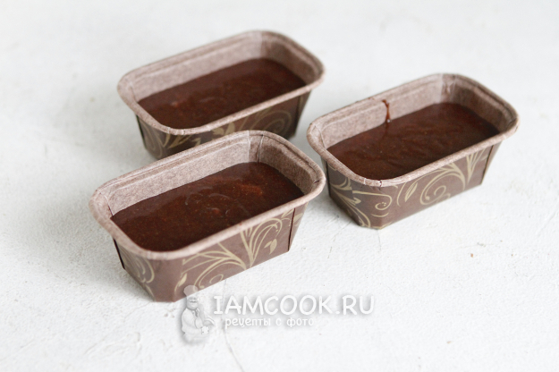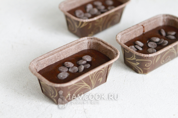 Разложите тесто по формочкам и утопите шоколадные капли.
