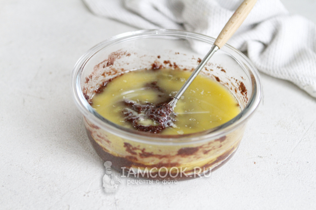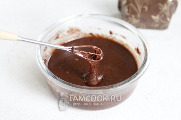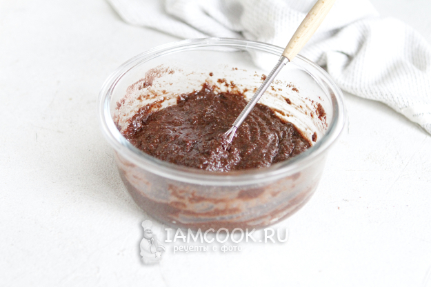 Вмешайте его в тесто. Консистенция теста у вас должна получиться приблизительно как на фотографии. Тесто должно получиться в меру жидким.