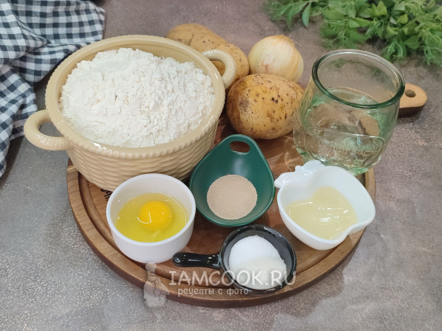 Соберите ингредиенты для приготовления беляшей с картошкой в духовке.