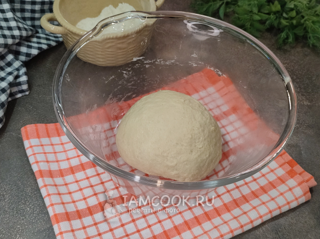 Должно получиться мягкое, эластичное тесто, слегка липнущее к рукам. Накройте тесто пленкой, уберите в теплое место отдохнуть.