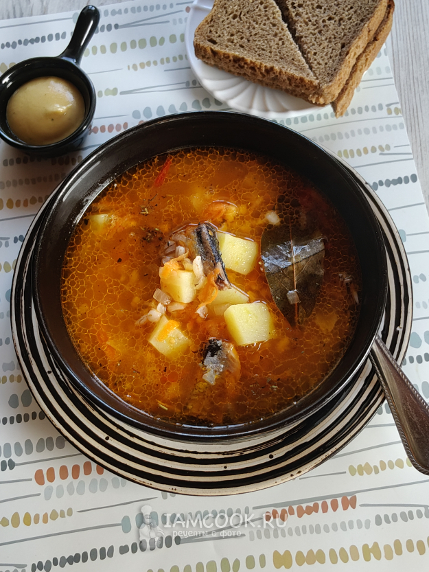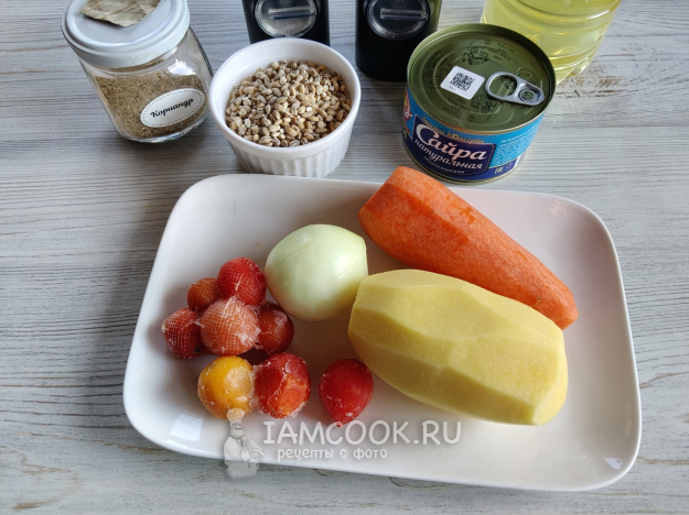 Уху с сайрой и перловкой я готовила в небольшой кастрюле, на две порции (пропорционально уменьшила количество продуктов). Но если чётко следовать списку ингредиентов, то продуктов хватит на большую кастрюлю для большой компании.