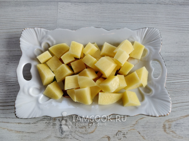 Когда картофель будет готов, добавить сайру, соль, перец, лавр и кориандр.