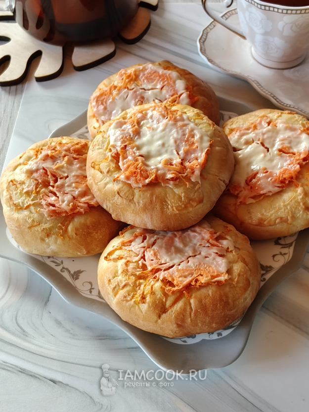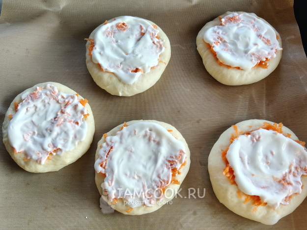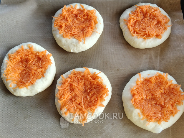Поставить в духовку, включить нагрев (180 градусов). Выпекать шаньги с морковью до легкого румянца, примерное время - 25 минут.