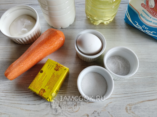 Чтобы испечь морковные шаньги, надо взять такие ингредиенты.