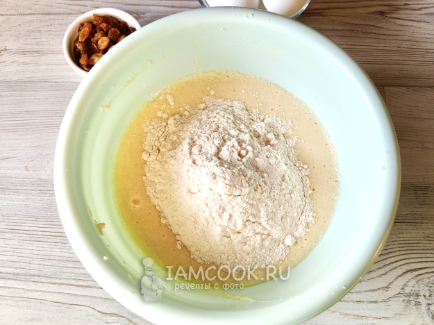 Выпекать около 30-35 минут при 180 градусах или до плотности кекса.