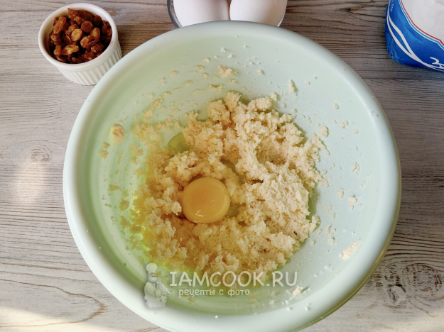 В тех рецептах, что мне встречались, не идет сода или разрыхлитель, я добавила пол чайной ложечки, для подстраховки (но, наверное, правильнее не добавлять, чтобы кекс получился более плотным, а не воздушным, как у меня))).
