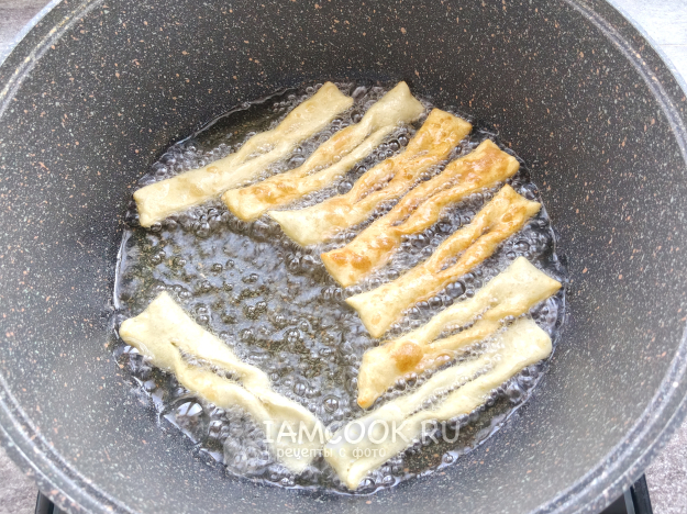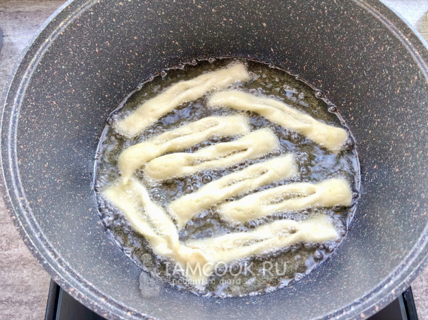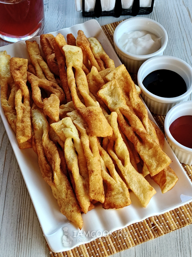 Картофельный хворост перекладывать на тарелку с салфетками, чтобы стекло лишнее масло.