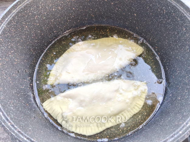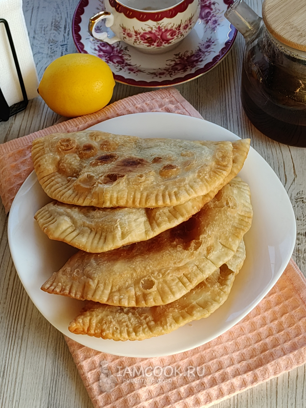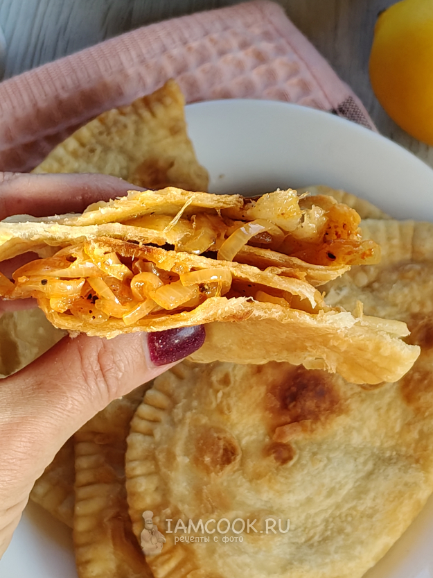 Горячие чебуреки с луком перекладывать на тарелку с салфеткой.