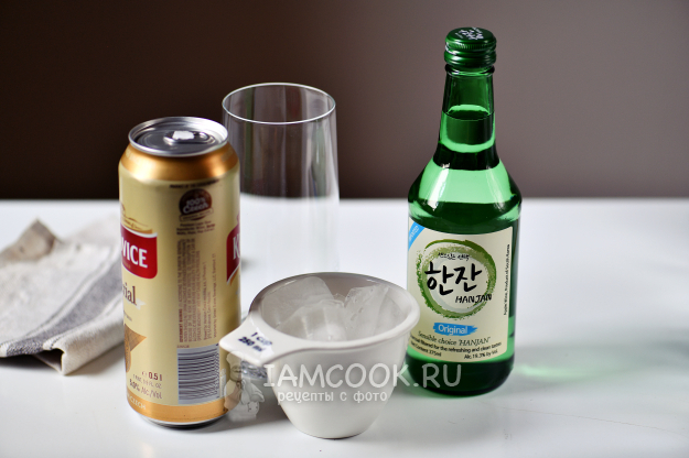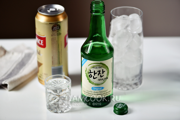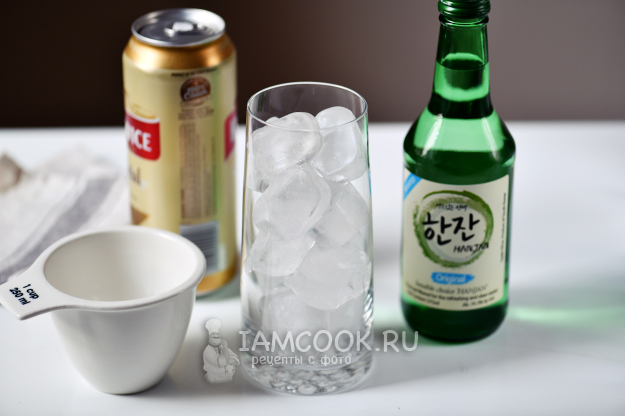 Все, что нужно для приготовления коктейля из соджу с пивом - перед вами. Кроме двух основных ингредиентов, вам еще понадобятся высокий стакан и лед. Соджу лучше всего покупать с оригинальным вкусом, без фруктово-ягодной отдушки и с небольшим процентом содержания спирта, просто поверьте))