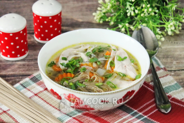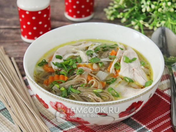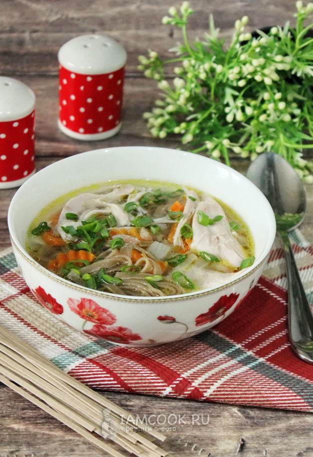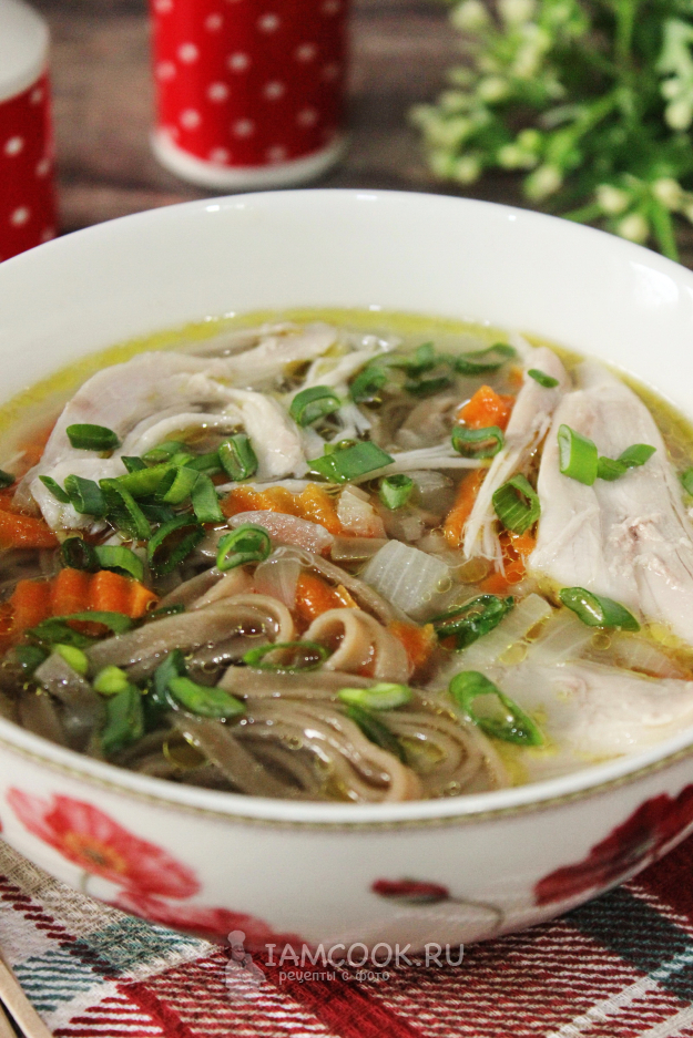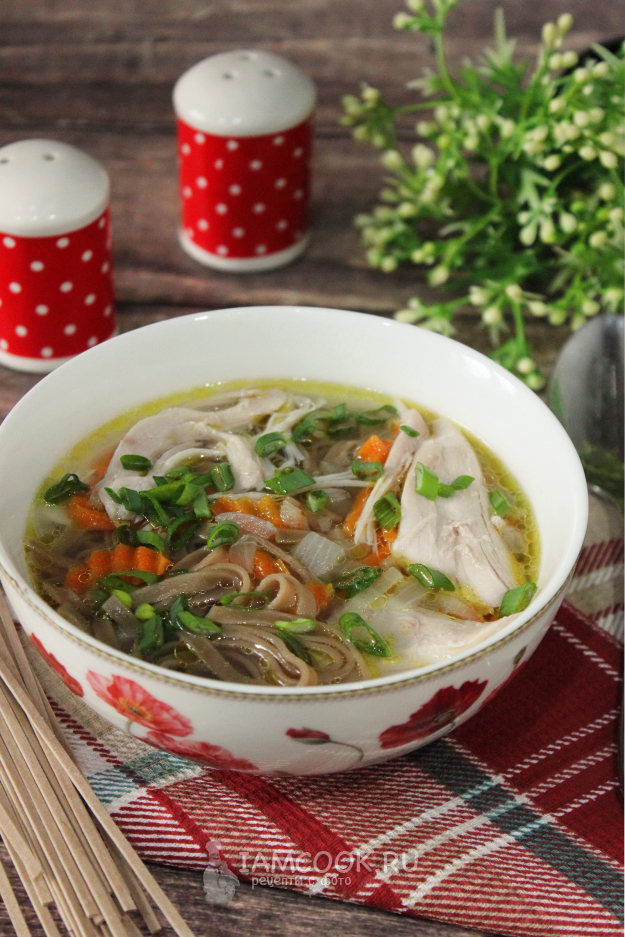 Куриный суп с гречневой лапшой готов.