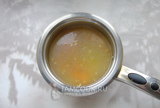После добавьте лук с морковью в кастрюлю с бульоном.