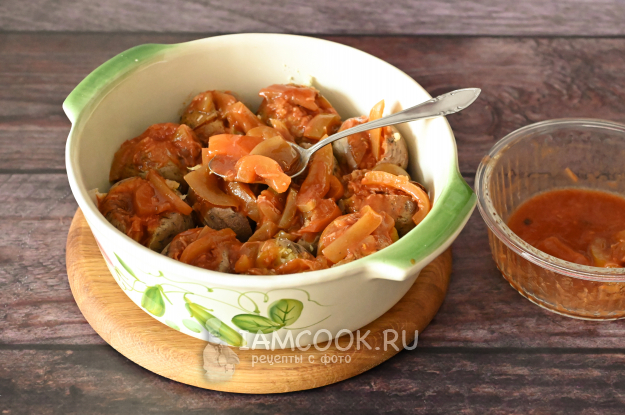 На каждую картофелину выложите немного заливки из лечо. Старайтесь, чтобы кусочки перца лежали на картофеле, а соус можно просто вылить сверху.