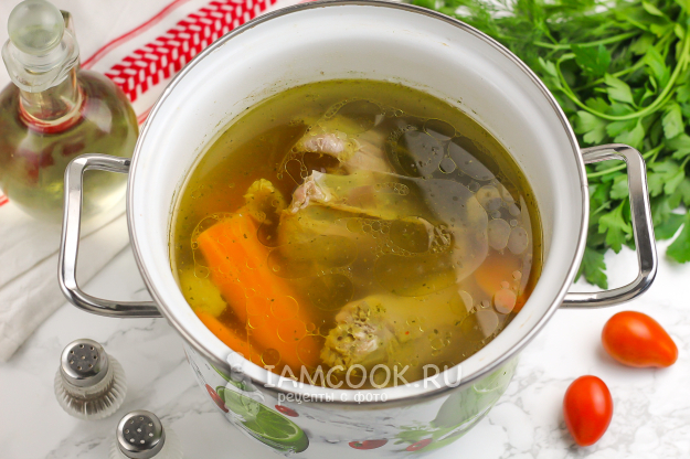 Бульон из утки получится очень насыщенным, жирным, поэтому в конце варки удалите жир с поверхности половником.