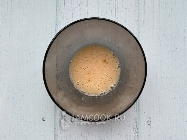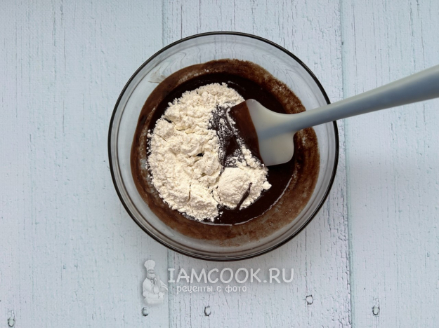 Просейте муку поверх смеси и аккуратно вмешайте её.