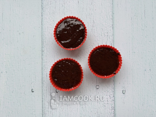 Подготовьте формочки для выпечки, заполните их тестом. Отправьте формы в разогретую до 180°C духовку на 7-10 минут. Важно не передерживать десерт!