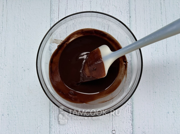 Разломайте шоколад на кусочки и положите его вместе с маслом в миску. Поставьте миску с шоколадом и маслом над кастрюлей с кипящей водой (водяной баней). Постоянно помешивайте смесь лопаточкой, пока шоколад полностью не растает и масса не станет однородной.