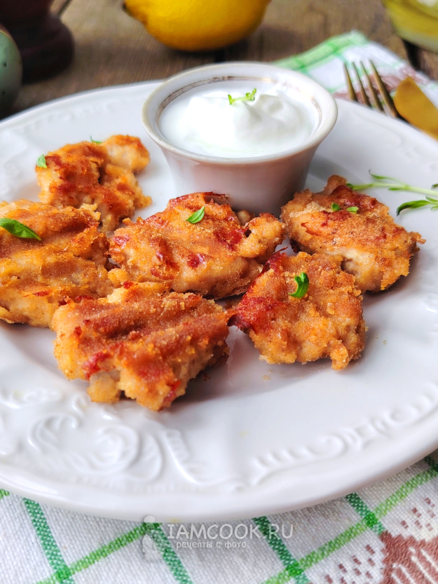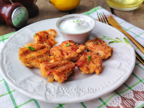 Готовить наггетсы в мультипекаре под закрытой крышкой около 15 минут (ориентируйтесь на мощность своего мультипекаря). Периодически кусочки можно переворачивать, чтобы они зарумянились равномерно.
