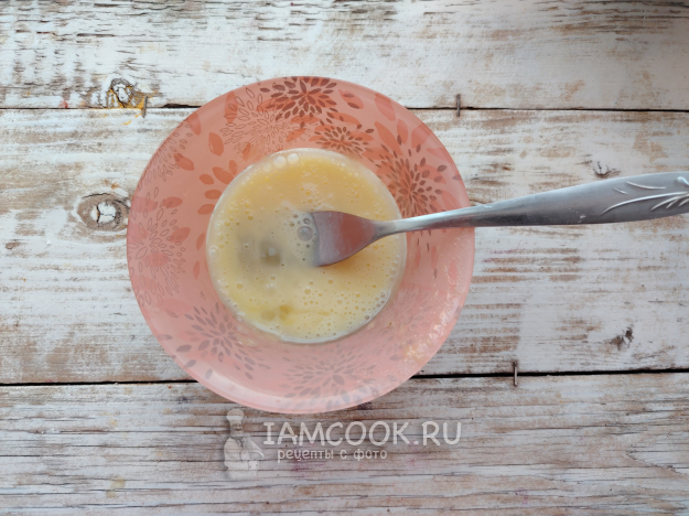 В одной мисочке разболтать вилкой яйцо с солью и перцем до однородности.