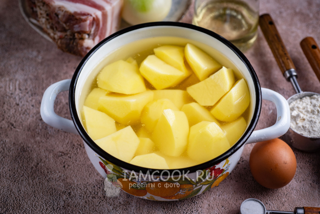 Выложите картофель в кастрюлю с водой, добавьте соль и отварите до готовности.