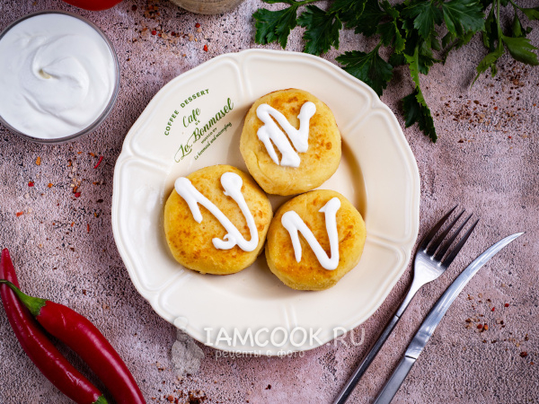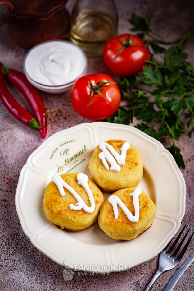 Готовые картофельные колобки с беконом подавайте к столу горячими, со сметаной. Приятного аппетита!