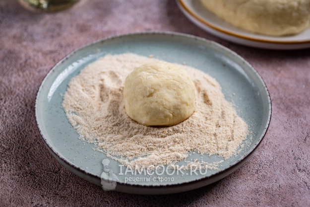 Сформируйте руками колобок и обваляйте в панировочных сухарях.