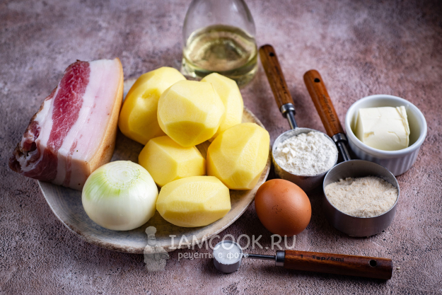 Все ингредиенты для картофельных колобков соберите по указанному списку. Картофель почистите и помойте.