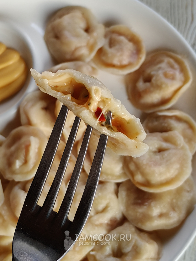Пельмени с помидорами и сыром лучше готовить сразу, не морозить.