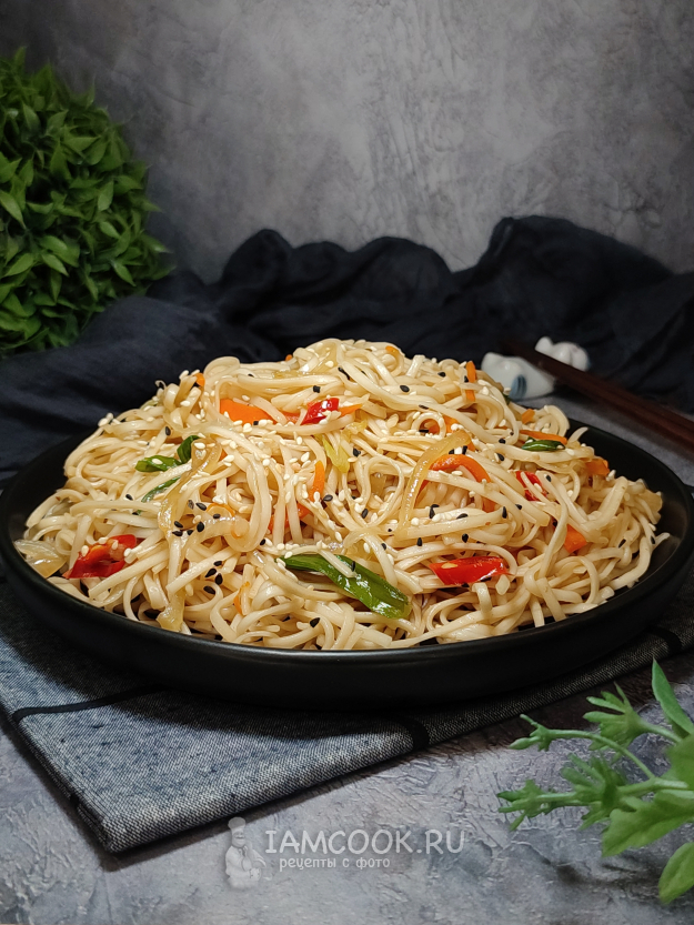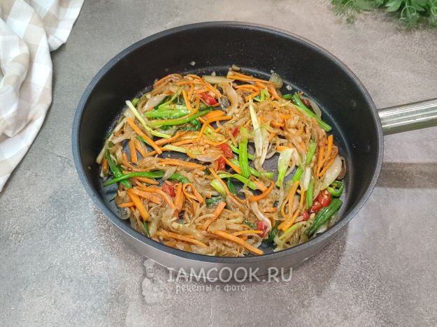 Перемешиваем удон с соусом, прогреем все вместе минутку-другую, и наше блюдо готово!