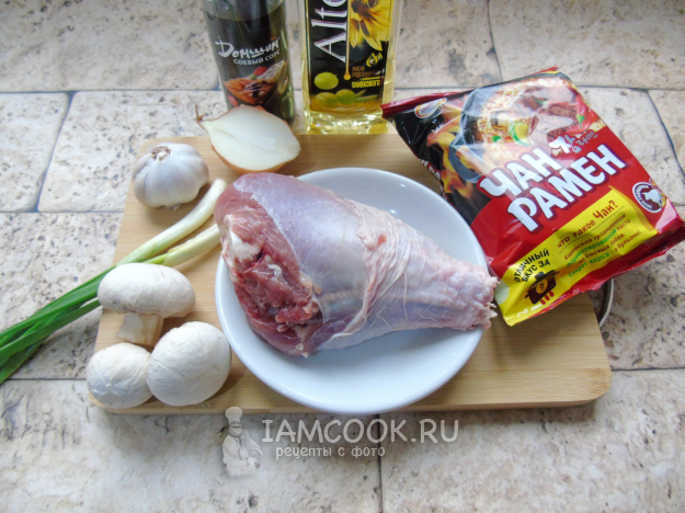 Соберите ингредиенты для приготовления рамена с индейкой.