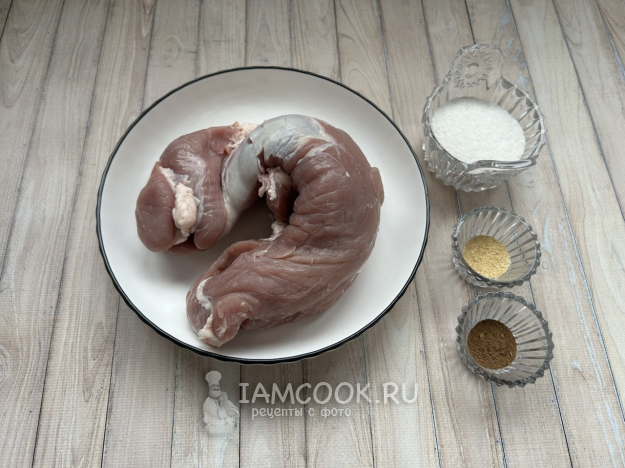 Соберите все необходимые ингредиенты для приготовления вяленой свиной вырезки по списку.