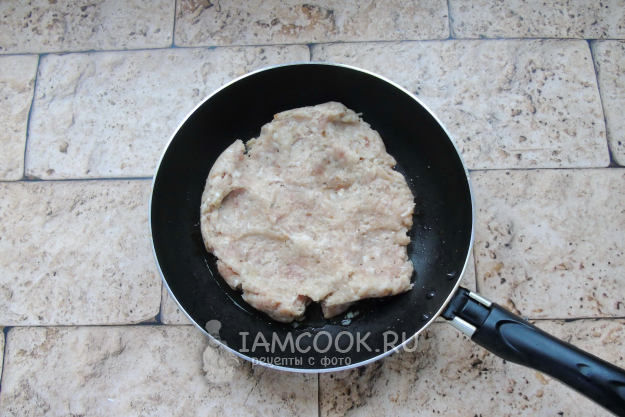 Фарш посолите, поперчите и выложите в сковороду с чесноком.