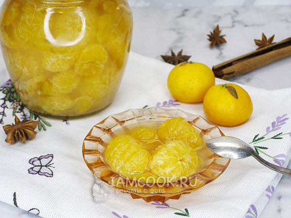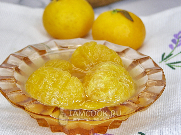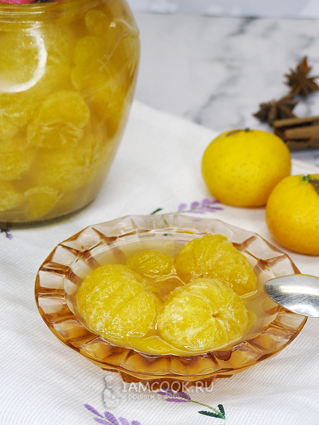 Остывшие мандарины в сиропе снова доводим до кипения, варим 5 минут, затем перекладываем в простерилизованную банку, закрываем прокипячённой крышкой и переворачиваем банку вверх дном. Оставляем в таком виде остывать.