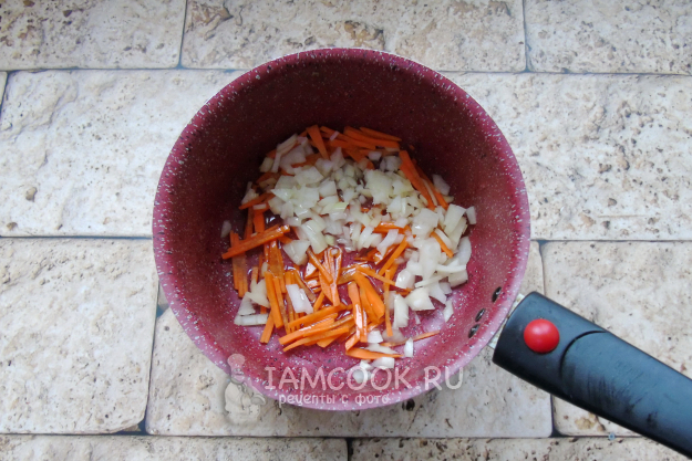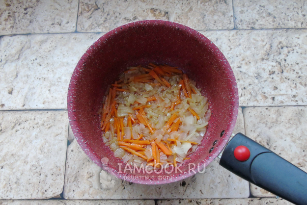 Пассеруйте овощи на небольшом огне до прозрачности лука.