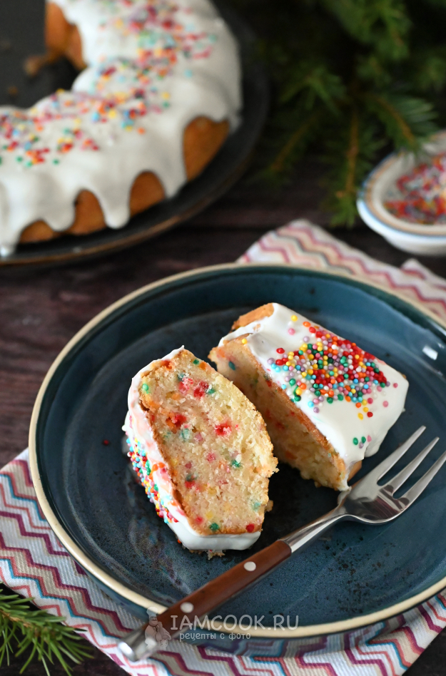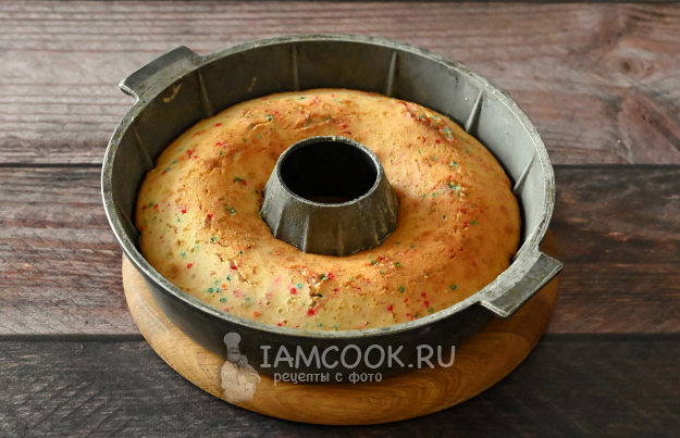 Кекс с посыпкой готов! Можно заварить чай и продегустировать!