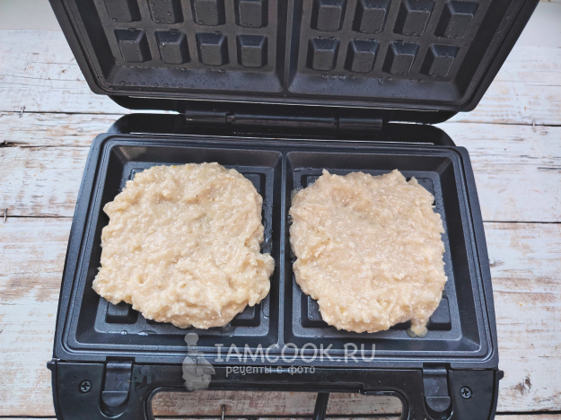Закрыть крышку. Выпекать в течение 6-7 минут, чтобы вафли хорошо подрумянились.