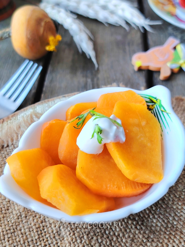 Снять фольгу с формы, жидкость должна полностью выпариться, а репа – стать мягкой.