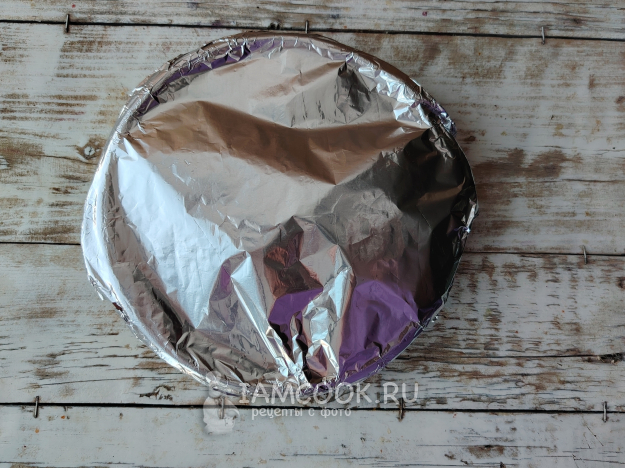 Затянуть форму сверху плотно фольгой. Отправить в духовой шкаф, разогретый до 180 градусов, на полчаса.