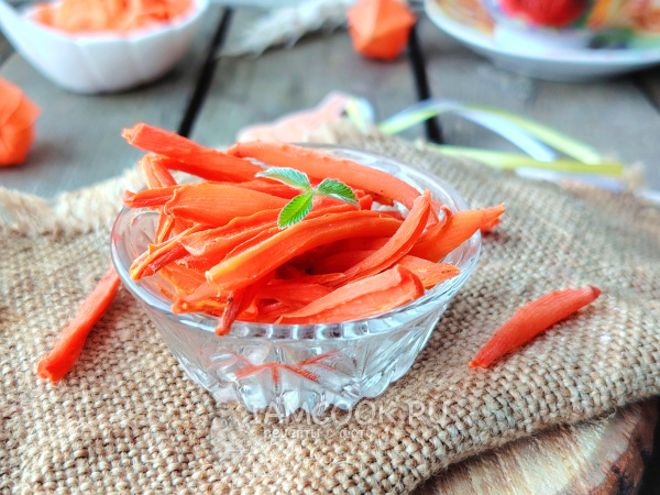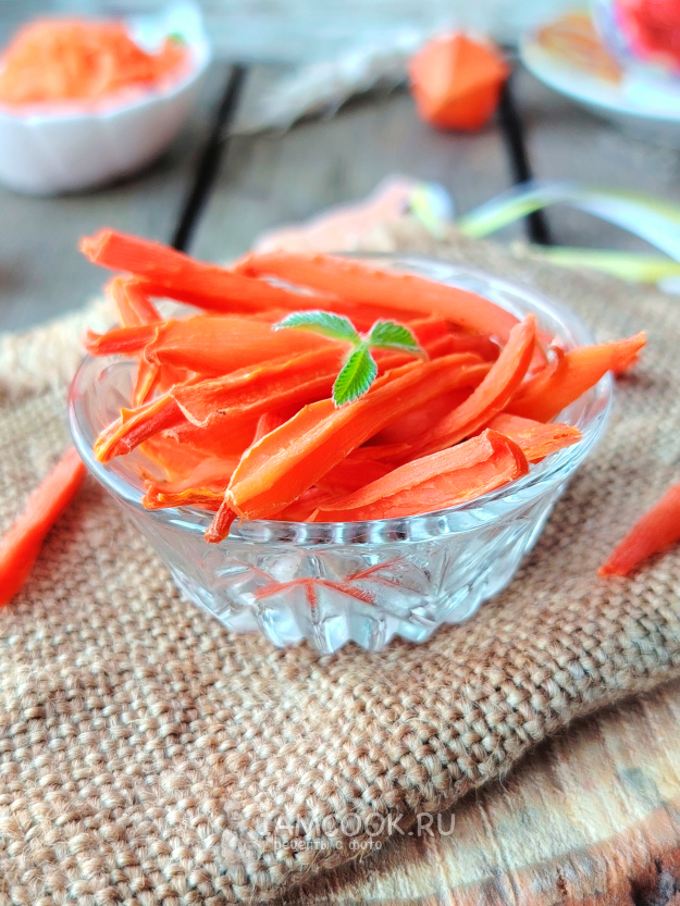 Снова отправить в духовку на 20 минут, температуру следует снизить до 170 градусов, чтобы морковные палочки не пересохли, и периодически проверять их состояние. Паренки из моркови в духовке должны получиться слегка вялеными, мягкими, легко гнуться и не ломаться.