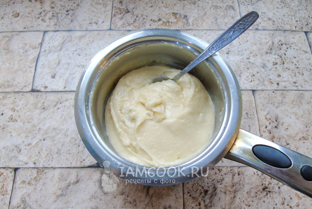 Быстро перемешайте все ингредиенты до однородной консистенции. Полученное тесто должно хорошо отходить от стенок и дна кастрюли.