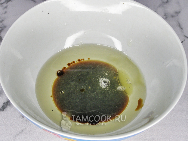 В миску вливаем растительное масло, добавляем соевый соус и лимонный сок. Перемешиваем.