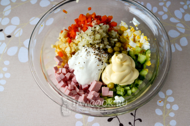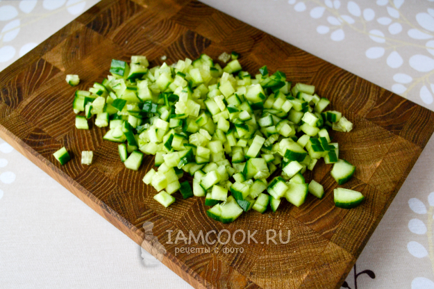 Как-то на Новый год к нам в гости приехали родственники. Наша гостья - моя двоюродная сестра - в то время очень любила аэробику и, не менее, считать калории. Поэтому специально для нее пришлось что-то готовить из имеющихся продуктов, а выбор продуктов в то время был ограничен. Так как я была еще юна, то не особо вникала в эти сложности. А вот Оливье для сестры я запомнила. Это был почти ПП (в то время, конечно, этого словосочетания не было в лексиконе) Оливье, в котором не было картошки, а маринованный огурчик был заменен на свежий, майонез - на сметану.