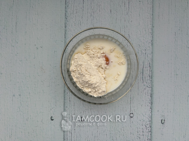 Смешайте 200 мл холодного молока, муку и желток. Постоянно мешайте венчиком, чтобы избежать комочков.