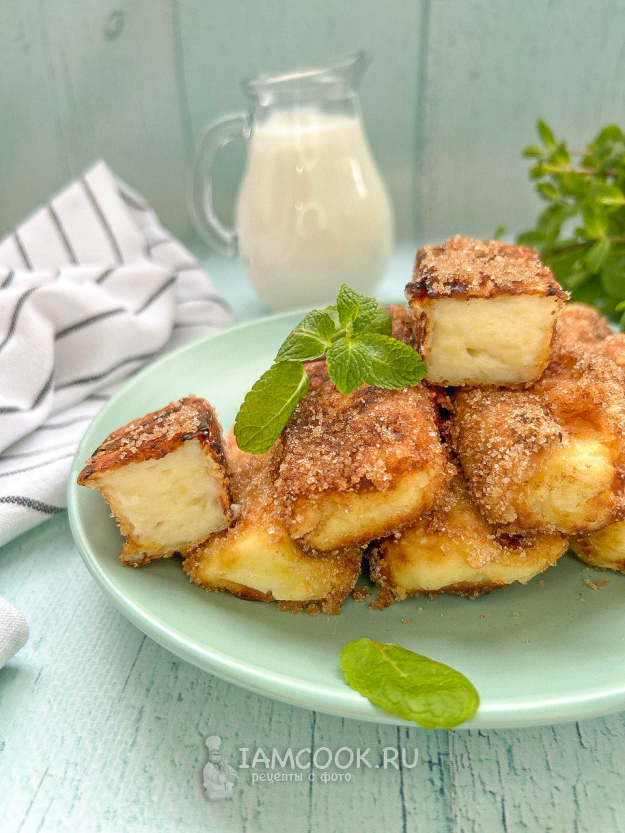 Подавайте десерт «Жареное молоко» теплым или холодным.